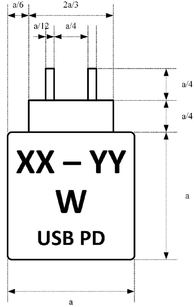 4.外包装或标牌中需要体现充电器的类型和配置情况,信息要以可读可见的方式显示,其中a应该不小于7mm,如下图:
